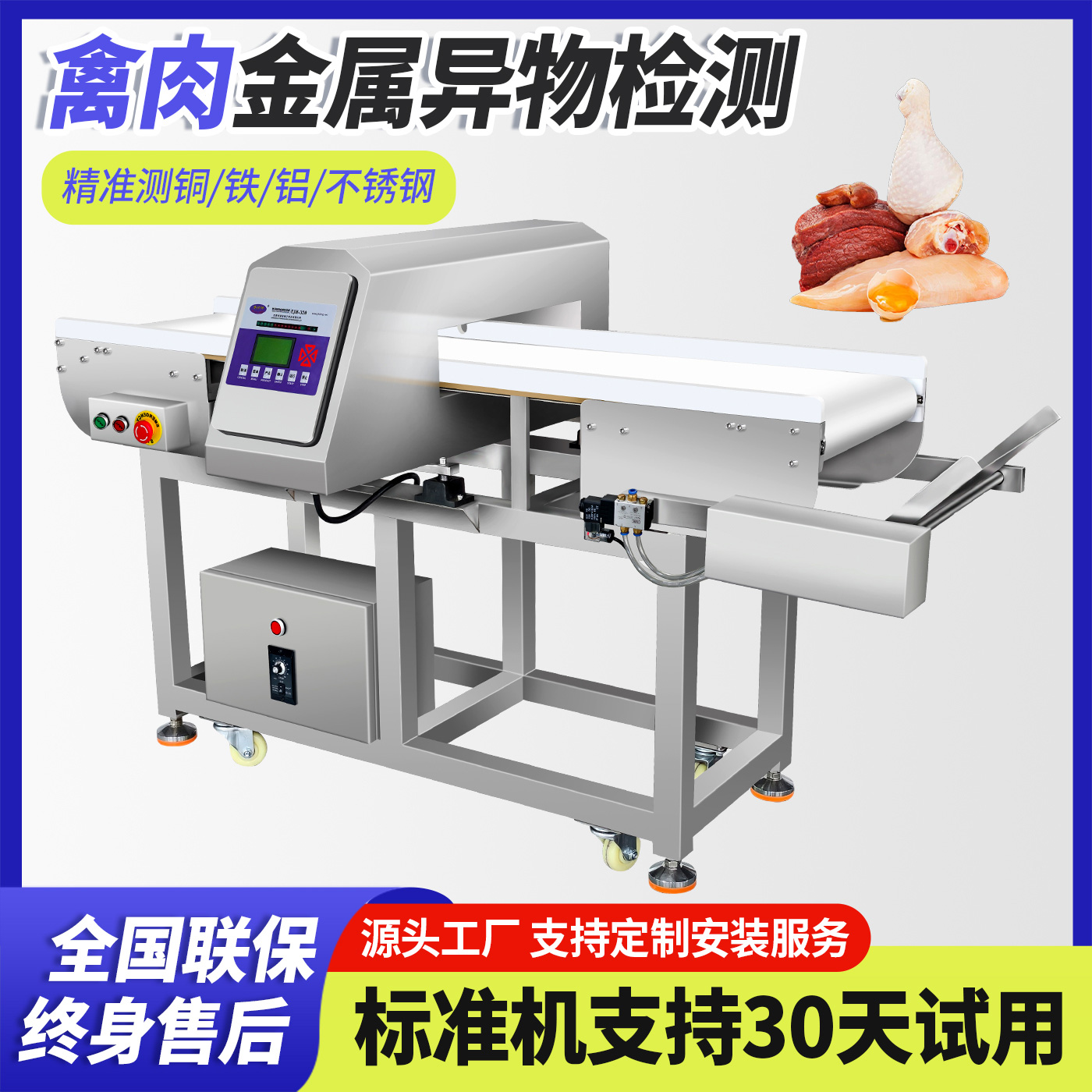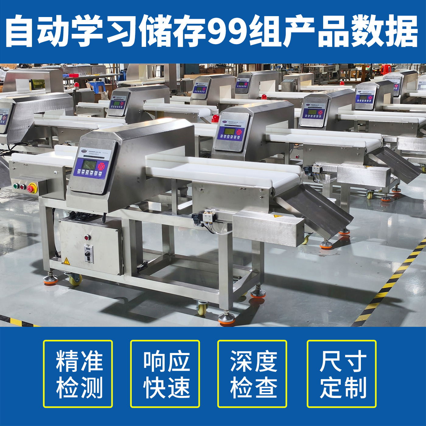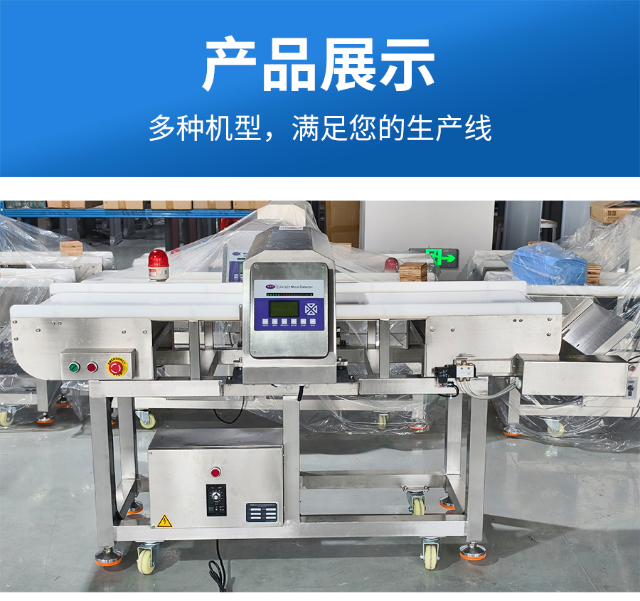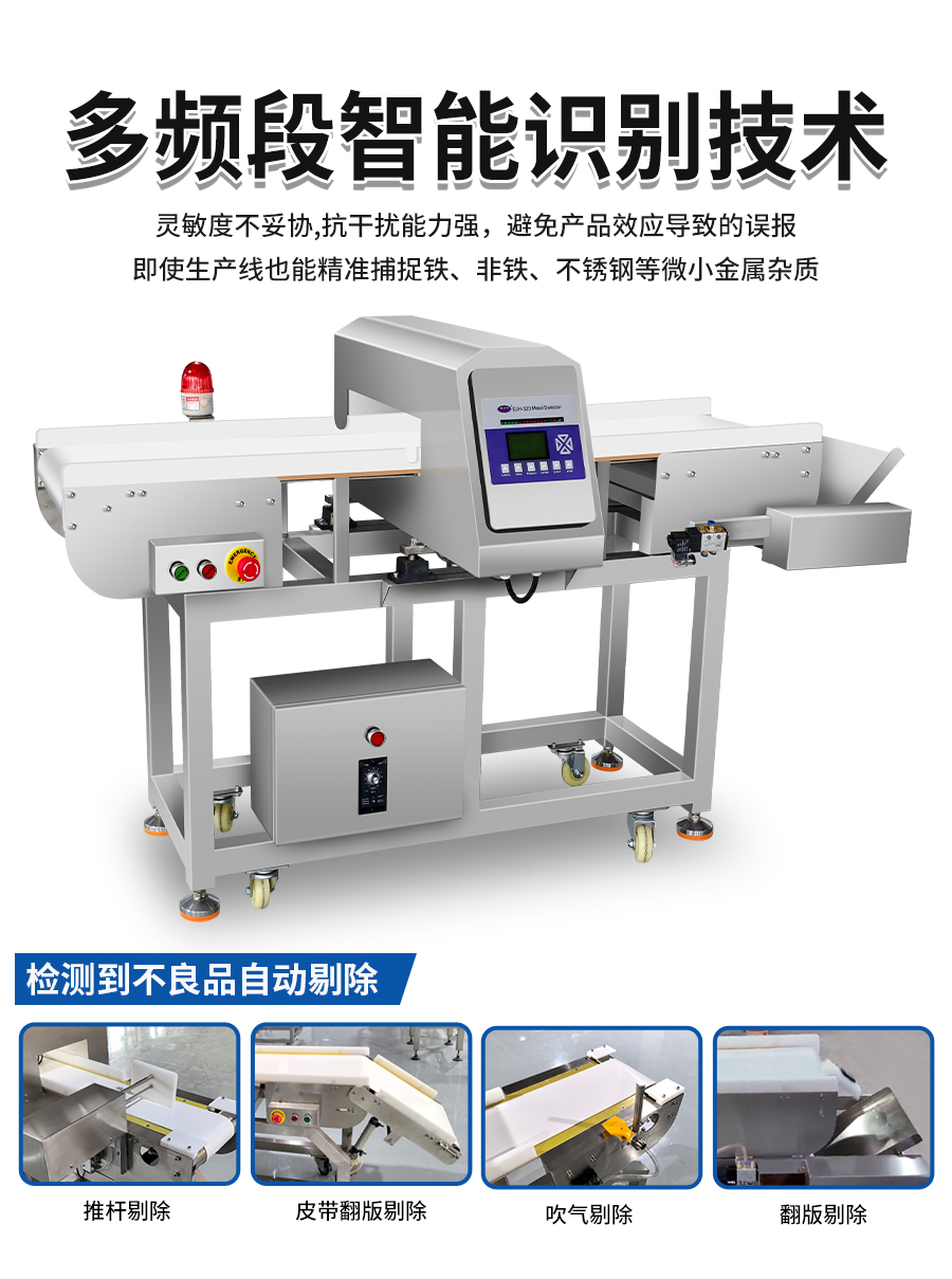 EJH-320系列全金属检测仪,可根据生产线需求配套定制窗口尺寸,检测精度最大化,先进数字信号处理技术,有效克服产品效应,可精准检测铁、不锈钢、铜、铝等金属,灵敏度高达0.5mm,广泛应用在检测肉类、水产、果蔬等食品加工过程中混入的金属碎片、铁丝等,精准高效,为您彻底解决金属异物隐患。
