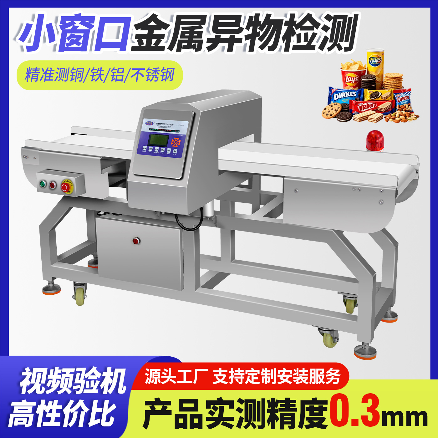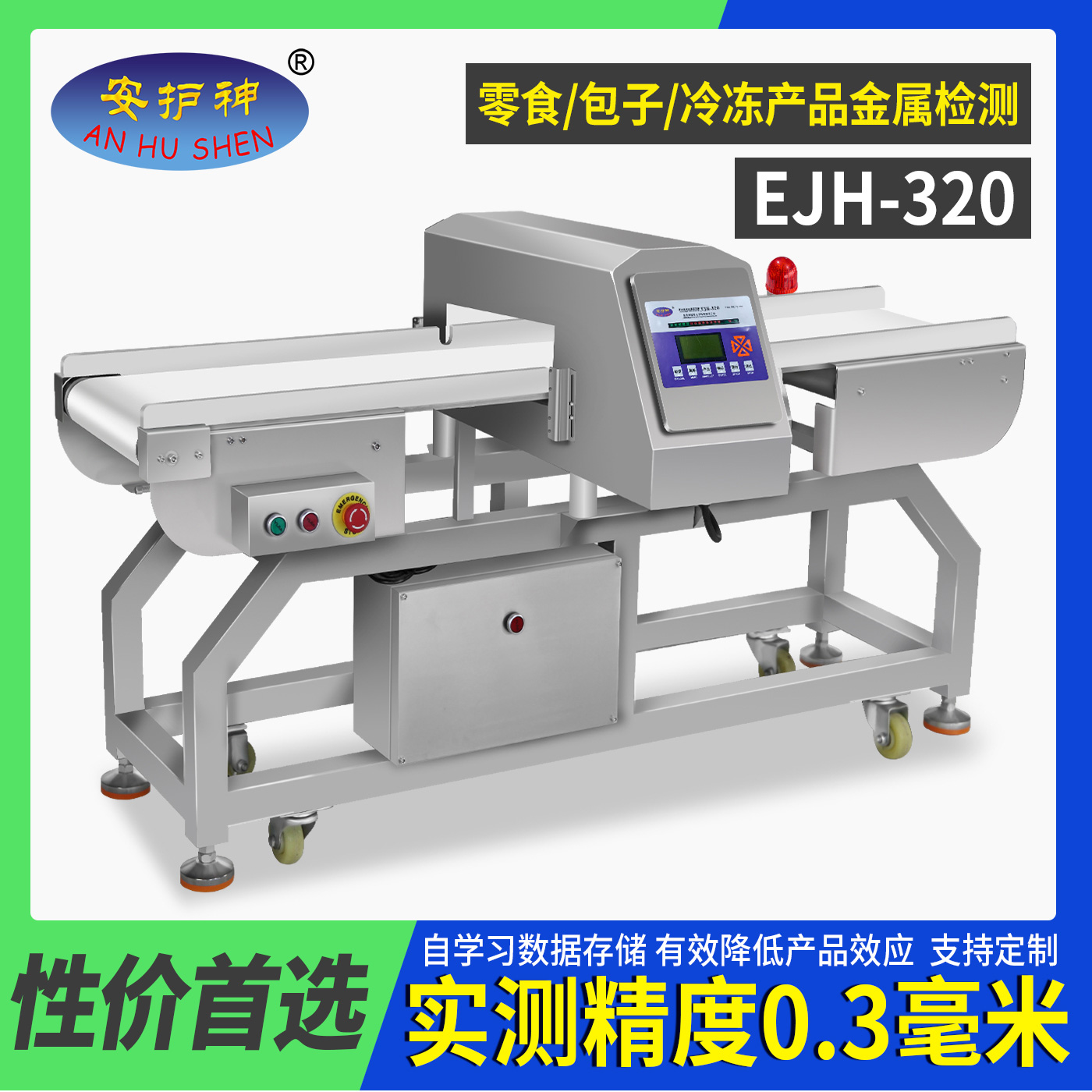 EJH-320系列全金属检测仪,可根据生产线需求配套定制窗口尺寸,检测精度最大化,先进数字信号处理技术,有效克服产品效应,可精准检测铁、不锈钢、铜、铝等金属,灵敏度高达0.3mm,广泛应用在检测肉类、水产、果蔬等食品加工过程中混入的金属碎片、铁丝等,精准高效,为您彻底解决金属异物隐患。